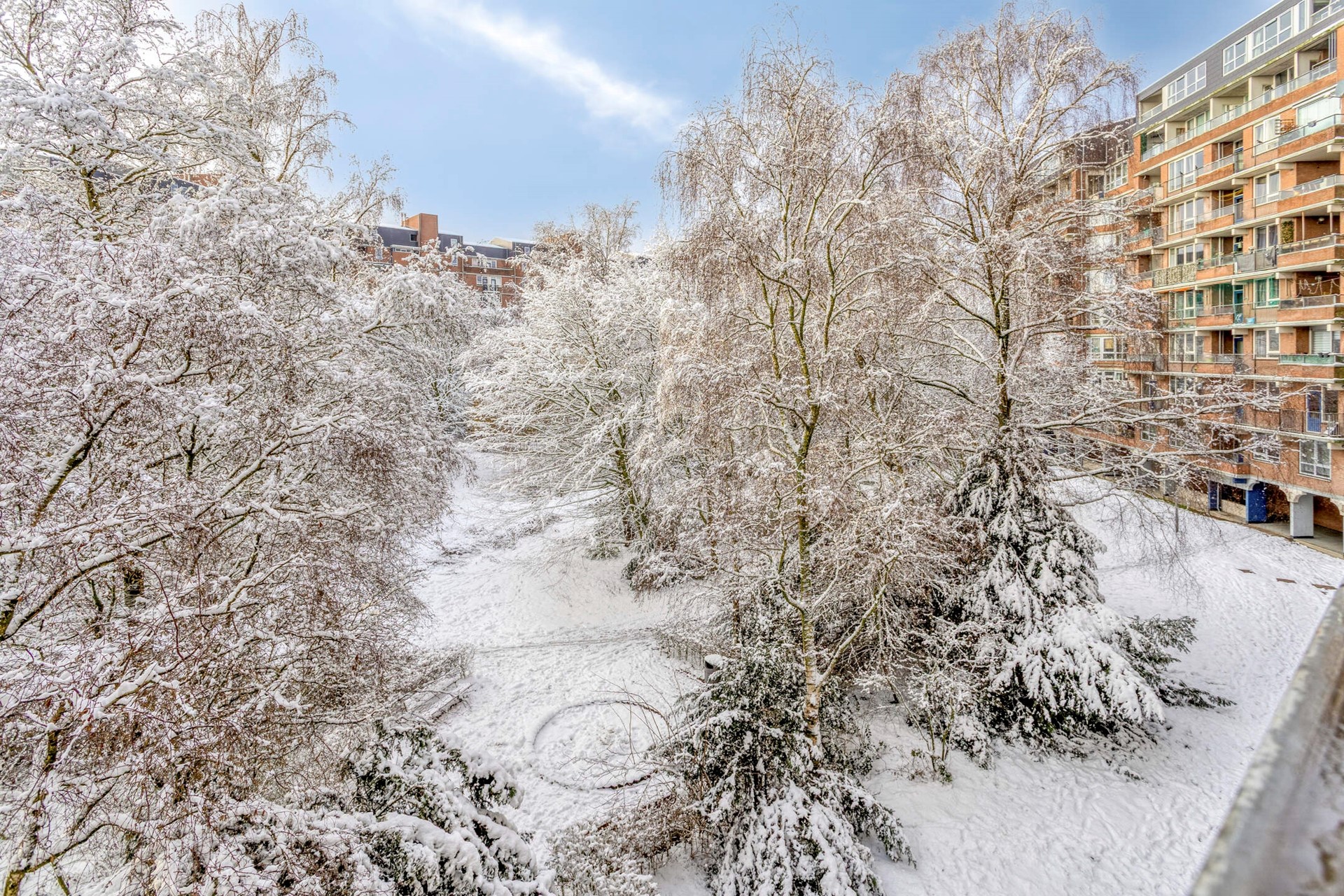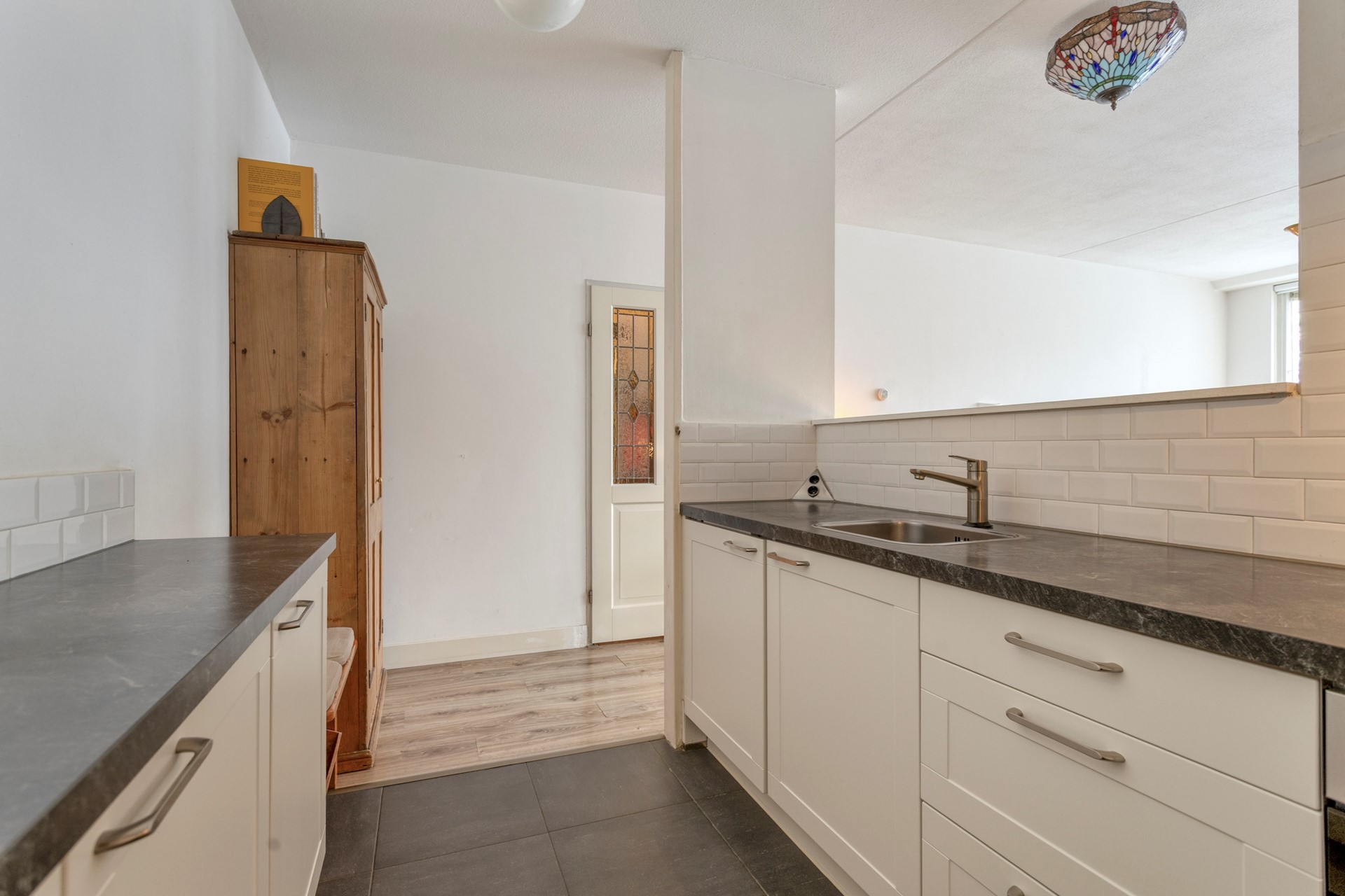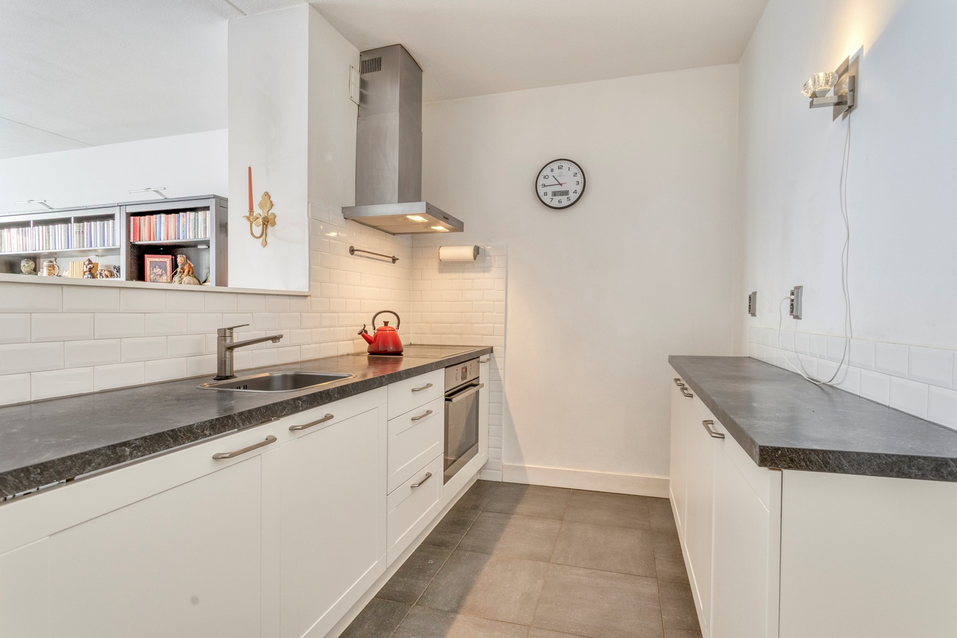 The living room is beautifully situated with a lovely view of the park. Each season offers a different ambiance. Here you can comfortably sit and there is room for a dining table. The windows have recently been replaced with HR++ glazing. The semi-open kitchen is well-equipped and the built-in appliances have recently been replaced.