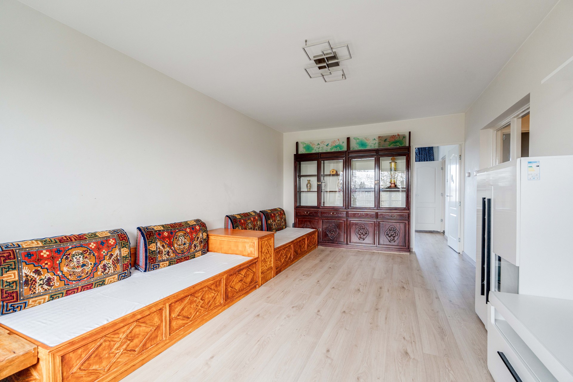 Via the hallway, you have direct access to two of the (bed)rooms, the living room, the separate toilet, and the kitchen. The two bedrooms located at the rear are spacious enough for a bed, but are also ideal for use as a home office, walk-in closet, or something else. The third bedroom can be reached via the living room. This is the largest and therefore the most suitable as a master bedroom. From this spacious bedroom, you walk straight into the bathroom. This was renovated in 2023 and is equipped with a shower, vanity unit, towel radiator, and connections for a washing machine and dryer.